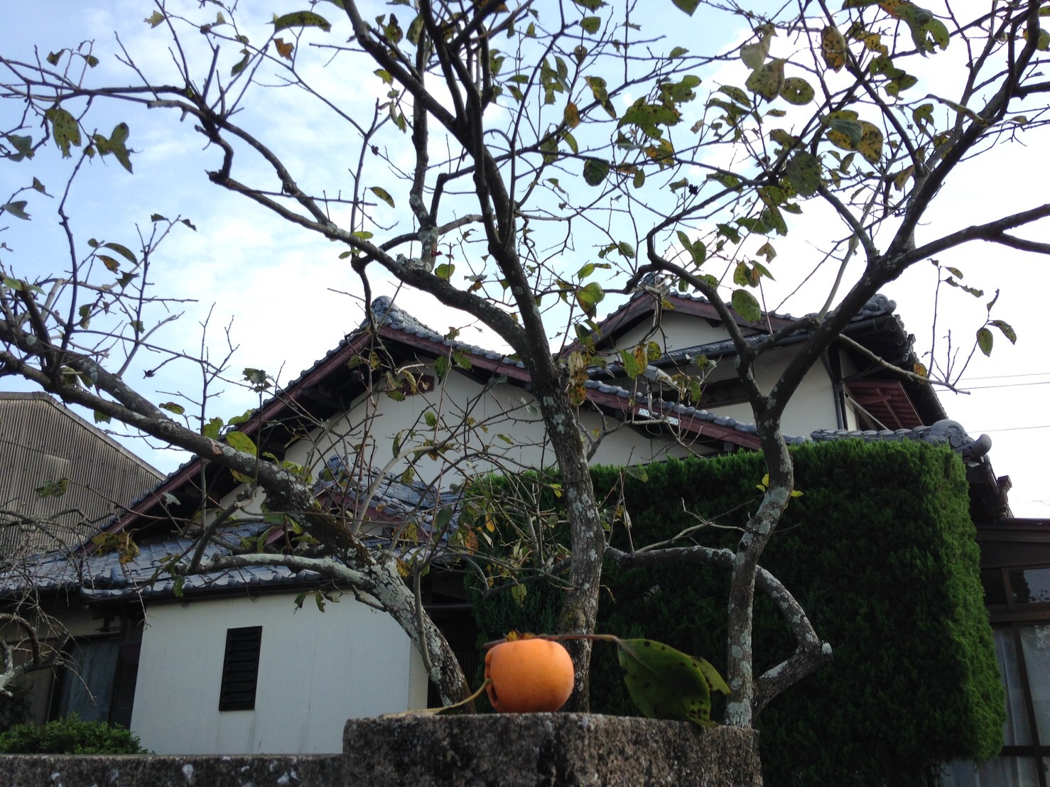 帰りに、ばーちゃん地の庭にある柿をとりました。