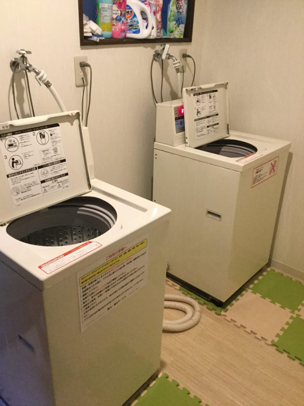 このシェアハウスのはコイン式になっていて1回100円。屋根付きの屋上に洗濯を干します。