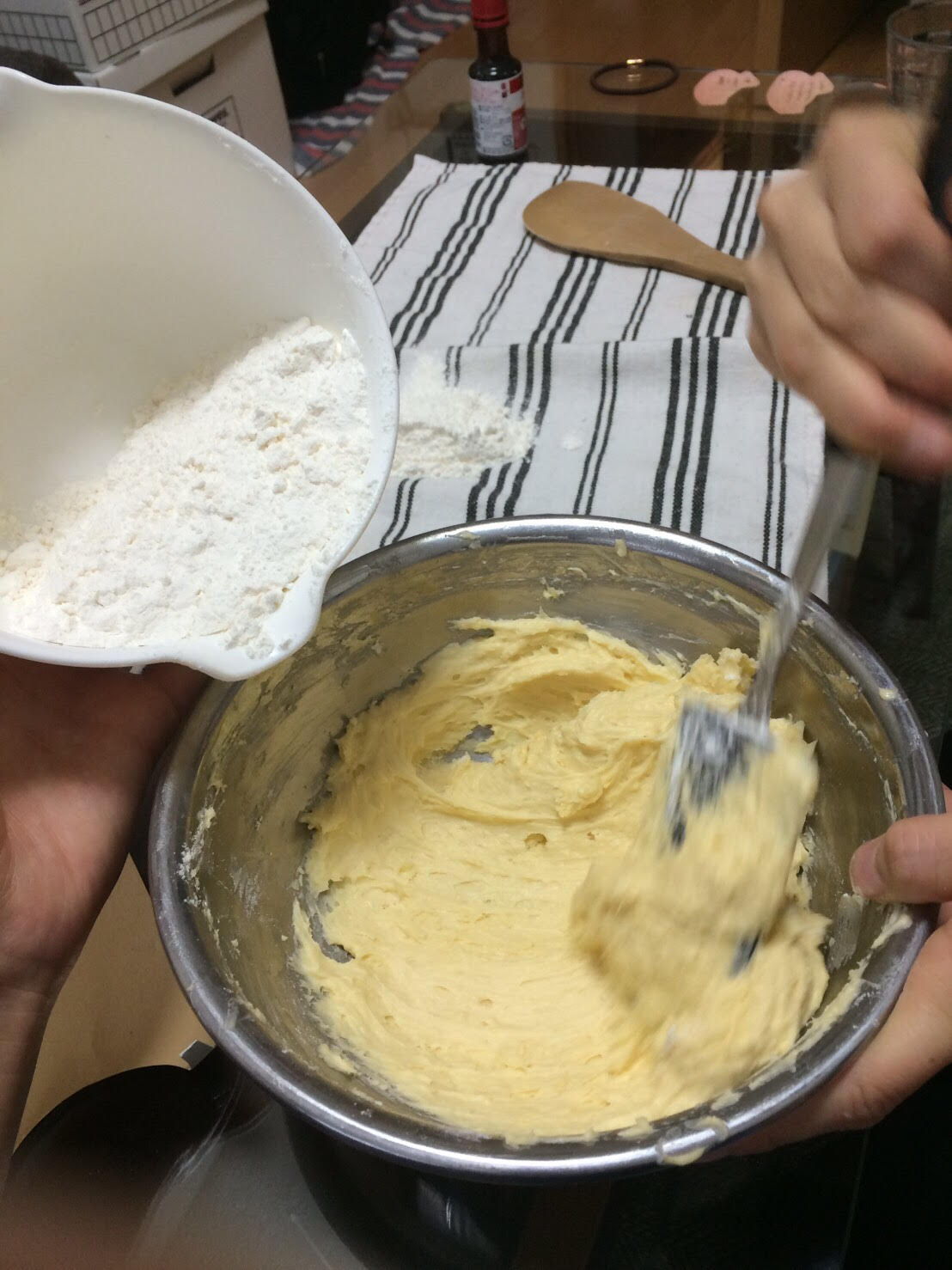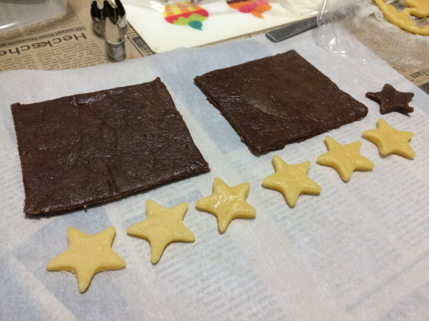 生地にココアなんて、混ぜたりしちゃって、形作ってさ