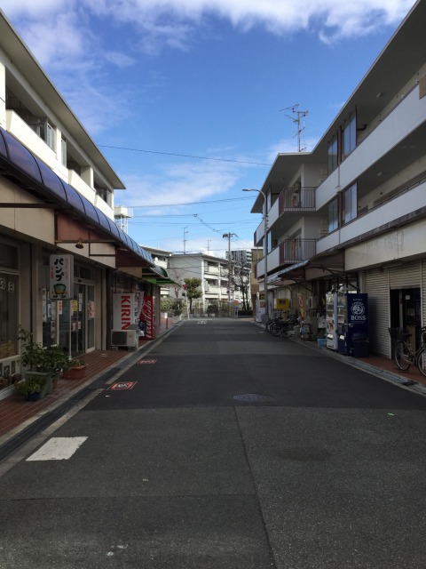 東出口を出ると、真正面にこんな道があるので真っすぐ進みます。