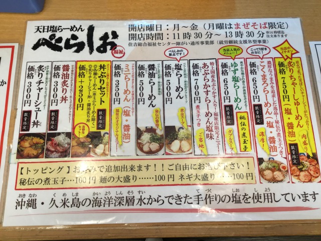 元々、「天日塩ラーメン べらしお」は堺市にある有名ラーメン店。