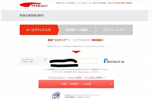 リクナビNEXTのサイトにまずは登録を済ませます。