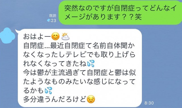 自閉症がどうこうという話ではなくて、家族、恋人、友人、職場の人も同じで、