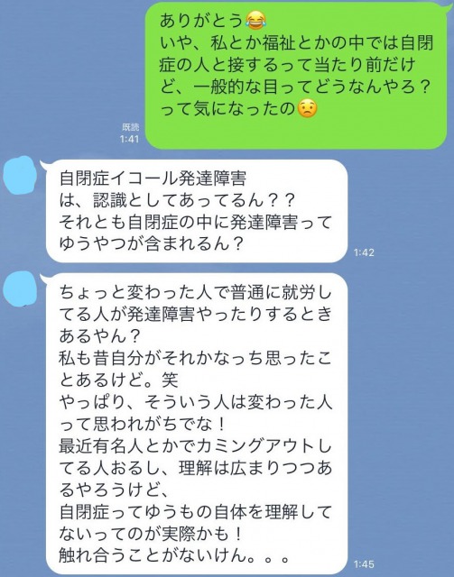 福祉の仕事をしていない友人にLINEで尋ねてみました。