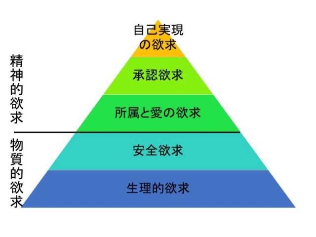ピラミッドの下の部分の欲求から満たされることで、上の欲求が出てくるという考えです。