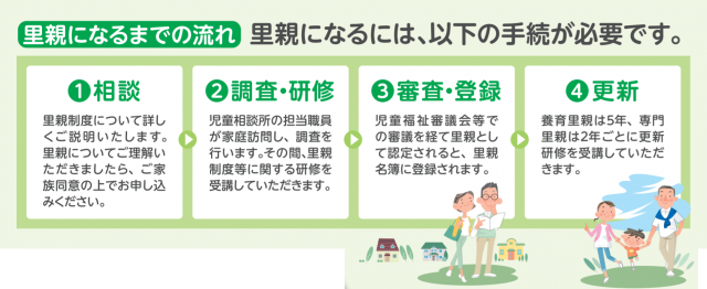 もちろん、里親になりたい!!といってすぐになれるわけではなく、里親制度にはしっかりと審査と手続きがあります。