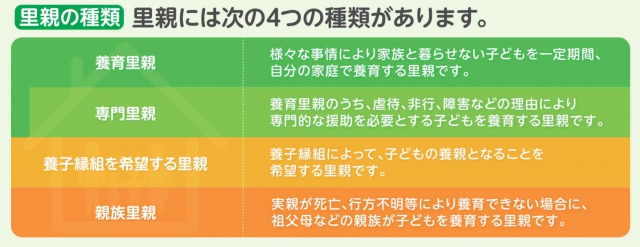 里親制度には以下の4つの種類があり、