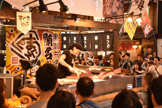 中に入るとマグロの解体ショーで盛り上がっていました。