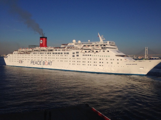 ピースボートというのは、1年に3回、100日間程をかけて世界一周をする船のこと。